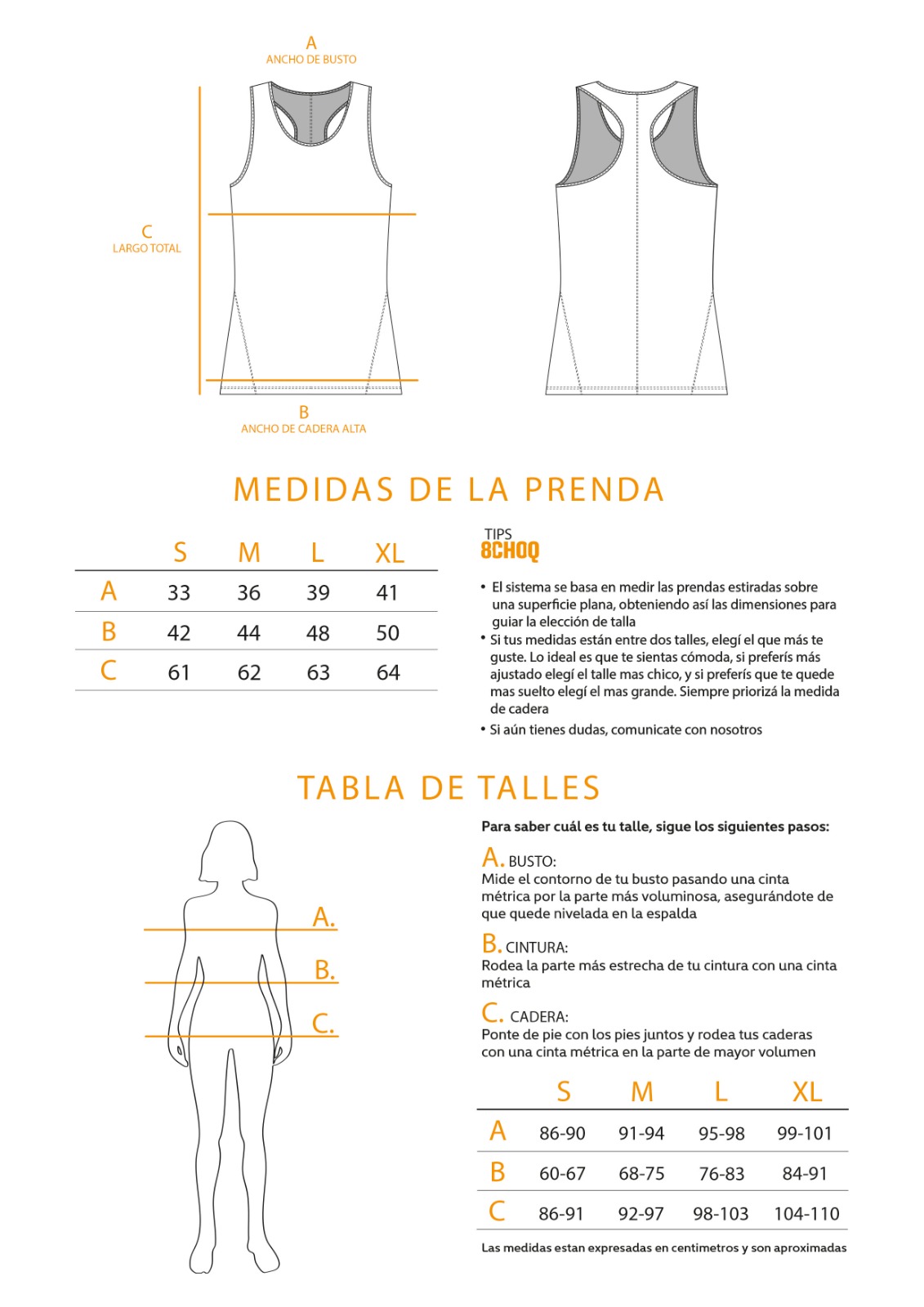 | Talle | Pecho (cm) | Cadera (cm) | Largo (cm) |