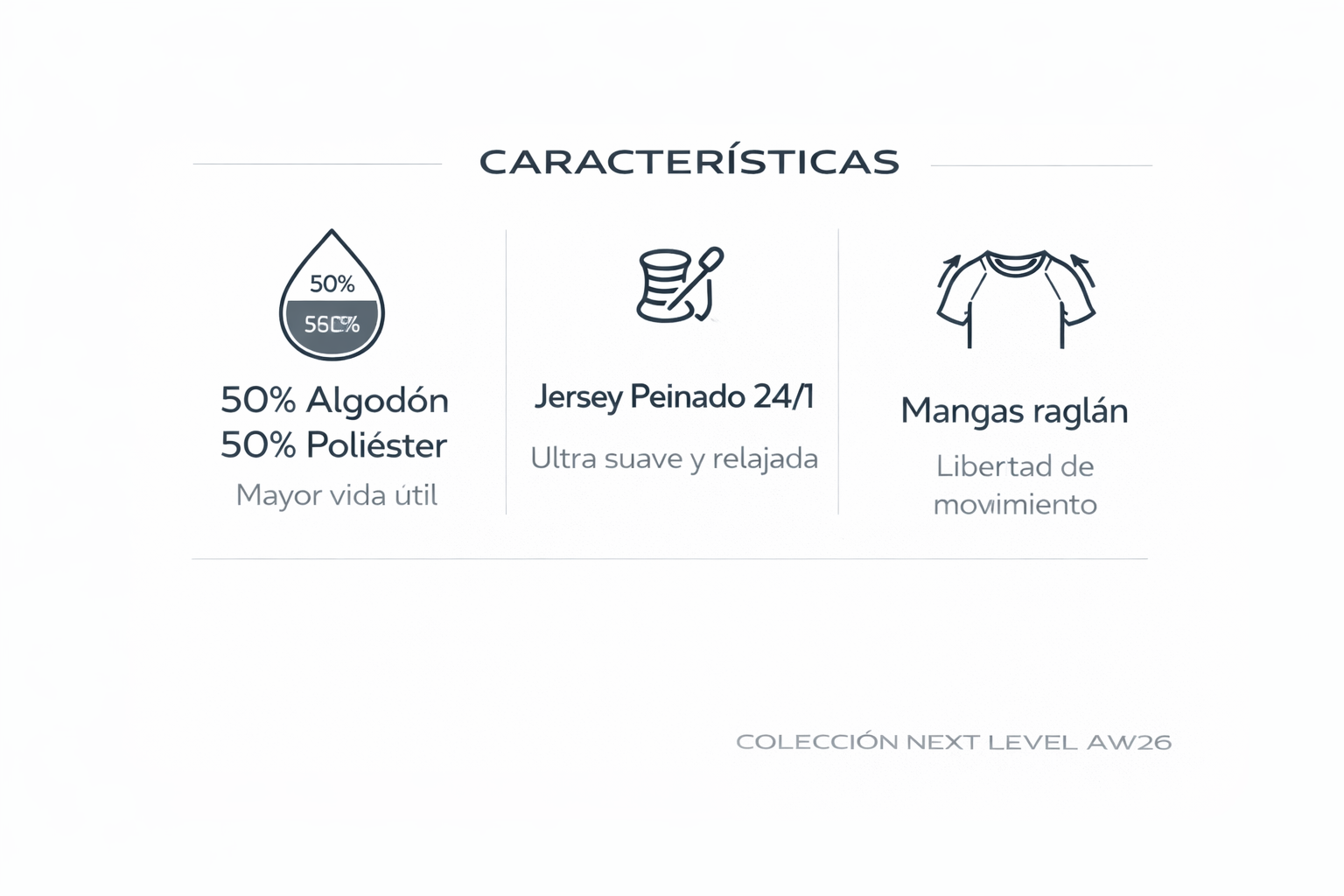 Confeccionada en jersey peinado 24/1, garantiza suavidad al tacto, liviandad y confort durante todo el día.
